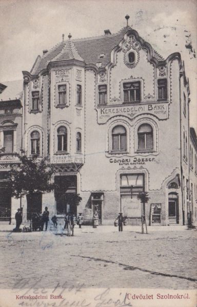 Ez lehetne ma a szolnoki cifrapalota, ha 111 évvel ezelőtt nem rossz helyre építik. Bár nevezhető-e rossz helynek az a telek, ahonnan egyszerre lehetett végigtekinteni Szolnok korzóján, a Szapáry úton, illetve a város főutcáján – a néhai Gorovén -, valamint piac- és főterén? Lenne-e ma olyan befektető, aki egy ilyen pompás telekre ne kezdene el építkezni, bízva abban, hogy az ideiglenes fennmaradási engedély harminc év alatt akár állandóra is változhat, avagy egyszerűen megfeledkeznek róla? Netán azért, mert valakinek eszébe jut, hogy az ország egyik főközlekedési útját, illetve Szolnok új lakó- és ipartelepét összekötő tengelyt talán mégsem a város közepén fogják átvezetni. Persze a történelem nem ismeri a „ha” szót, így ma már tényként kezelhetjük, hogy a Ságvári Endre út „kinyitásának” volt útjában a Kereskedelmi Bank szecessziós épülete, ami így is legalább negyedszázaddal élte túl ideiglenes fennmaradási engedélyét. Mindenesetre ne legyen kétségünk afelől, hogy Szolnok egyik legjobb kilátást biztosító helyiségei ennek az épületnek a sarkán voltak bő fél évszázadon keresztül.