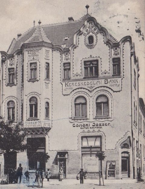 Ez lehetne ma a szolnoki cifrapalota, ha 111 évvel ezelőtt nem rossz helyre építik. Bár nevezhető-e rossz helynek az a telek, ahonnan egyszerre lehetett végigtekinteni Szolnok korzóján, a Szapáry úton, illetve a város főutcáján – a néhai Gorovén -, valamint piac- és főterén? Lenne-e ma olyan befektető, aki egy ilyen pompás telekre ne kezdene el építkezni, bízva abban, hogy az ideiglenes fennmaradási engedély harminc év alatt akár állandóra is változhat, avagy egyszerűen megfeledkeznek róla? Netán azért, mert valakinek eszébe jut, hogy az ország egyik főközlekedési útját, illetve Szolnok új lakó- és ipartelepét összekötő tengelyt talán mégsem a város közepén fogják átvezetni. Persze a történelem nem ismeri a „ha” szót, így ma már tényként kezelhetjük, hogy a Ságvári Endre út „kinyitásának” volt útjában a Kereskedelmi Bank szecessziós épülete, ami így is legalább negyedszázaddal élte túl ideiglenes fennmaradási engedélyét. Mindenesetre ne legyen kétségünk afelől, hogy Szolnok egyik legjobb kilátást biztosító helyiségei ennek az épületnek a sarkán voltak bő fél évszázadon keresztül.