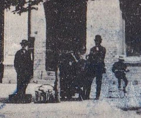 Az ezen képeslaphoz felhasznált fotónak azonban a házon és vitathatatlan szépségén kívül más érdekességei is vannak. Mégpedig az előtte, az utcán ácsorgó emberek. Akik minden bizonnyal nem azért néznek a kamerába, mert Szigeti füttyentet, inkább amiatt, hogy 1907 körül még érdekes látvány lehetett egy méretes fotómasina az utcán. Ami miatt esélytelen volt olyan képet készíteni, amin vagy nincsenek emberek, vagy nem a fotóst bámulják.