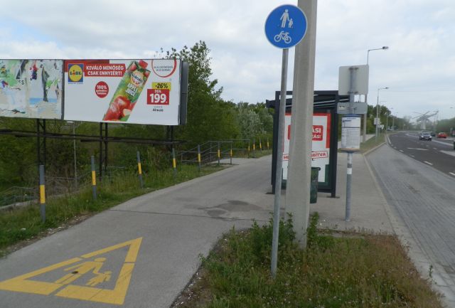 A következő három kilométeres szakasz tulajdonképpen a város egyik legjobban megépített kerékpárútja. Csakhogy ez egyben járda is, ráadásul a kerítések mellett fut, így nagyon figyelni kell a kis- és nagykapukon ki- beálló autók és gyalogosok miatt. És azon se kell csodálkozni, hogy itt-ott parkoló, pakoló autók lógnak be a bringák elé – egy helyen még egy használtcikk kereskedő is kipakol -, illetve legalább négy helyen buszmegállóra is az utazókra is érdemes figyelni. A szakasz érdekessége számomra, hogy bár az egyik legfontosabb használói a repülőtér dolgozói, az oda való bejutás azonban vagy nincs kiépítve, vagy nem egyértelmű. Megmondom őszintén, én egyetlen helyet találtam a viszonylag szabályos átkelésre, a régi Repülőmúzeum sarkán álló buszmegállónál.