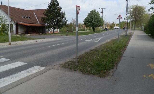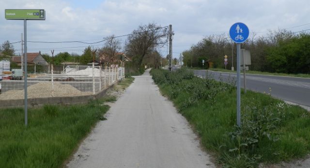 Az út első része – a körforgalom és a 4-es út között – viszonylag jó állapotú, és kellő szélességű ahhoz, hogy akár két bringás vagy egy bringás és egy gyalogos is elférjen egymás mellett. Az egyetlen kicsit zűrösebb pont az áruházakhoz tartozó buszmegálló, illetve a közelében lévő zebra környéke, ahol nem árt figyelni a gyalogosokra.