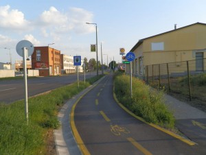 Hivatalosan idén tavasszal adták át a Marcipán cukrászda előtti lámpáskereszteződéstől a Hetényi Géza Kórház főbejáratáig tartó kerékpárutat, amit ideje volt kicsit jobban is szemügyre venni. Számomra egyértelmű, hogy ennek a beruházásnak a két legfontosabb eleme – a belváros felől nézve – még a temető előtt valósult meg. Egyrészt ideje volt a ma már a Reptárhoz vezető egykori iparvágány és a szakmunkásképző közötti – talán a MÁV tulajdonéban lévő – területen valami normális átjárót kialakítani. Másrészt a MÁV strand kerékpárúton történő elérése is ezzel a beruházással valósult meg. Azt persze nem értem, hogy a nagykereszteződés és a Horog utca közötti eddigi Indóház utcából mikor és miért lett Bolt köz, de most nem is ez a lényeg, hanem az, hogy a szolnoki kerékpárút-hálózat immár a MÁV strandig és a körülötte lévő sporttelepig is elér.