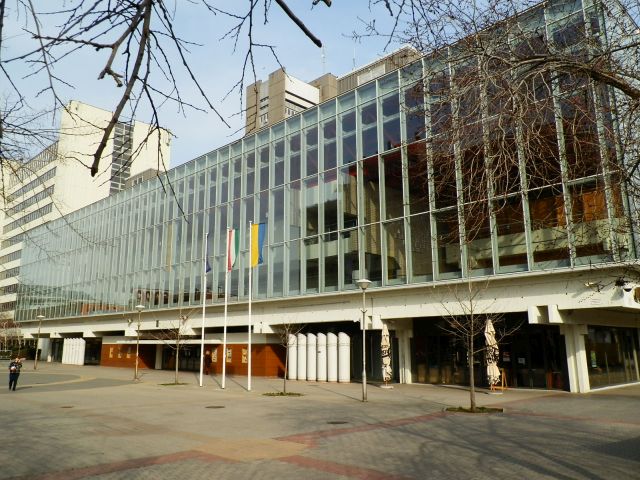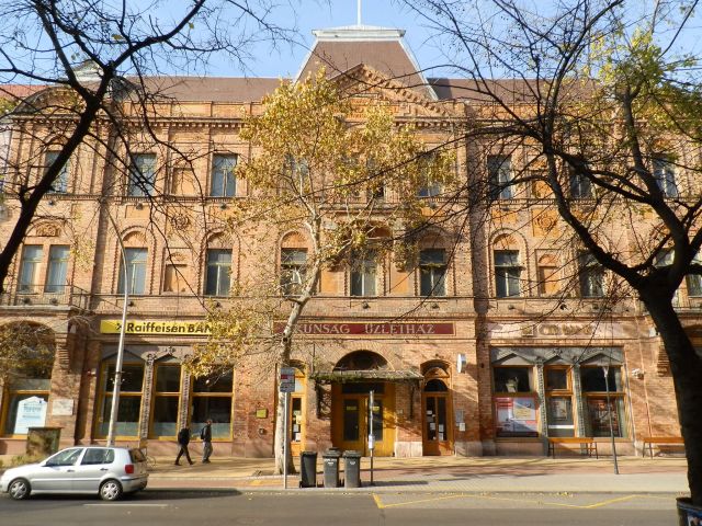 A mai napig Szolnok egyik legjobb modern épületének tartom a Hild téren álló „üvegpalotát”. Részben a szerkezete miatt – lényegében egy belső épületet egy, a környezetét is visszatükröző üvegdobozba helyeztek -, részben a belül látszó piros vasszerkezet és a homokszínű kerámia burkolat miatt.