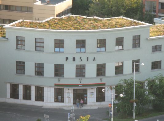 Petróczki Ferenc fotóján, amelyik a vízügyi székház tetejéről készült, jól látszik a szolnoki nagyposta – 1-es posta, főposta, ki hogy szereti említeni – épületének különlegessége. Modern, funkcionalista, ugyanakkor van benne valami szépség és egyediség. Ahogy a múltszázad első felének legjelentősebb képzőművészeti és építészeti irányzatának alkotásaiban általában. A szolnoki főposta épületét ugyanis bauhaus stílusban emelték, és úgy tudom, ez az egyetlen ilyen jegyeket magán viselő ház a városban.