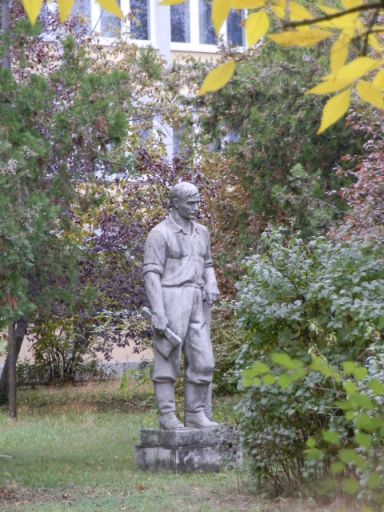 A mából nézve akár úgy is értelmezhetem testtartását és arckifejezését, hogy fiatalon elhunyt alkotójára gondol, aki kétszer futott neki a Magyar Képzőművészeti Főiskola szobrász szakának, mivel közben kitört a háború. Tanulmányait már a harcok befejezése után kezdhette el másodjára, amit aztán a Népköztársaságban fejezte be. Nem lehet kétségünk afelől, hogy elkötelezett, de nem tehetségtelen káder volt – 1946-ban elnyerte a Magyar Kommunista Párt nagydíját -, aki Leningrádban – a fiatalabbak kedvéért Szentpétervár – folytathatta tanulmányait, ahol kandidátusi fokozatot is szerzett. Hazatérése után a Képzőművészetin, majd a Műegyetemen is tanított, 1956-ban – még a forradalom előtt – Munkácsy-díjjal ismerték el munkásságát. Egy szakportál a következőket írja róla: „Az oktatást, nevelést, a kultúra terjesztését éppoly fontos feladatának tekintette, mint az alkotó munkát. Meggyőződésből képviselte a közérthető, realista művészetet szobrászatában és írásaiban egyaránt.”