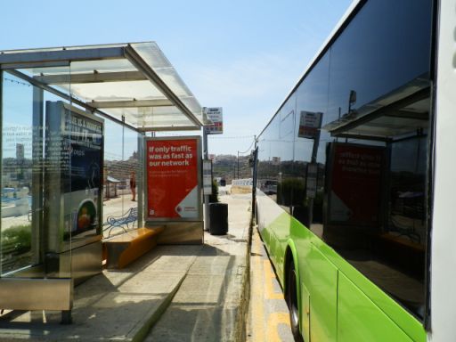A máltai buszközlekedést – a kihelyezett táblák alapján sejthető, hogy az Európai Unió támogatásával – néhány éve modernizálhatták. Ez ráadásul nemcsak abban merült ki, hogy a legendás buszokat vadonatúj Mercedes és kínai modellek váltották fel, hanem a fontosabb buszállomásokat is korszerűsítették. Igaz, ez utóbbi, például Vallettában kicsit magyarosra sikerült, ugyanis az ország főpályaudvarát úgy sikerült felújítani, hogy bizonyos pontjain az új buszok nem tudnak megfordulni, így az oda-vissza tolatgatás néha komoly dugót okoz a nagy forgalmú helyen.