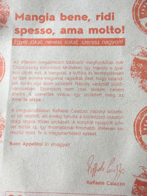 Persze tudom, hogy a ma még fura helyválasztás és a kellemes belső tér semmit se érne a megfelelő konyha és személyzet nélkül. Miként azzal is tisztában vagyok, hogy az elképesztő asztali örömök a dizájnt is képesek szebbé tenni. De mindez lényegtelen, hiszen sokkal fontosabb, hogy az Amo la Pizza nem egy üzletileg felépített olasz életérzés, hanem valóban egy cseppnyi Olaszország Szolnokon. Nem átverés, nem csalódás, hanem per pillanat maga a csoda. Igaz, engem már azzal levettek a lábamról, hogy a hűtőjükben a több mint húsz éve megszeretett, de csak az olasz tengerparton kapható üdítő is megtalálható.