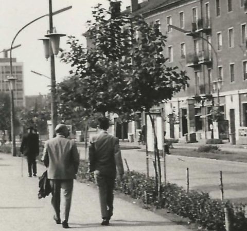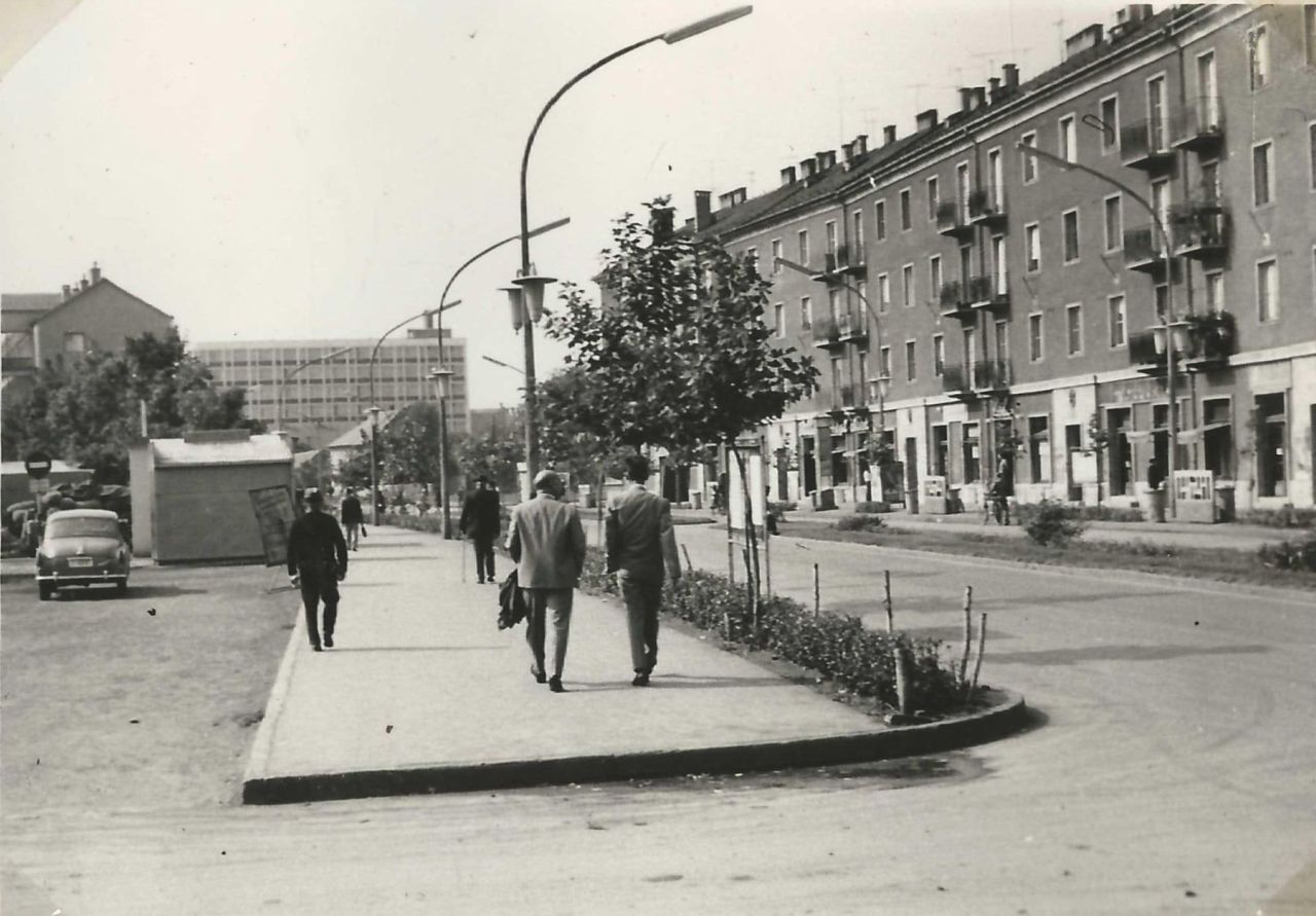 A fotó egyébként jól érzékelteti, hogy azért a hatvanas években tudtak előre gondolkodni. A képen látható férfiak alapján azt gondolom, ez egy hétköznapi fotó. A hétköznap ellenére azonban csak egyetlen Skoda Octavia látható a felvételen, azaz nagy forgalom még nem jellemezte a várost. Ennek ellenére a Ságvári körutat kétszer kétsávos, osztottpályás úttestként alakították ki. Persze, hiszen azzal számoltak, hogy a Zagyván-túli és a Zagyvaparti lakótelepek – a Tallinn és a Móra Ferenc úti -, valamint a déli ipartelepek között néhány éven belül megugrik majd a gépkocsiforgalom. Nem is tévedtek.