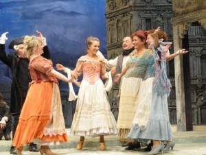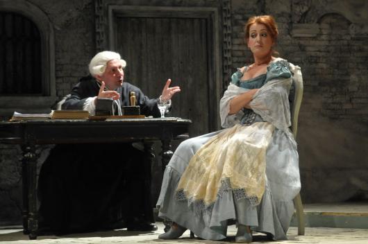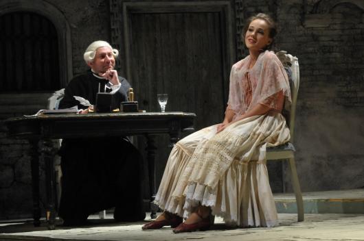 Pedig ezúttal komoly verseny folyik a szolnoki színészek között, hogy ki hozza ki a legtöbbet az itáliai szerző lassan negyed évezrede játszott klasszikusának alakjaiból. Különösen a második felvonásban. A vallomástételt süketséggel megúszó Radó Denise terhes asszonysága, a szépségét fegyverként használó Molnár Nikolett fruskája, a korabeli szingli létbe percenként belepusztuló Kertész Marcella huszonhat évese olyan stílusgyakorlatok, amiket nyugodtan lehetne oktatni a különböző színi tanodákban. Mészáros István játéka a puha székkel, illetve a végig használt hadarásának lelassítása a jegyző előtt olyan produkció, ami miatt többen törölgették a szemeiket – bocsánat a kifejezésért – a hasfájdító röhögés miatt. És ismét nem feledkezhetünk meg a Sárga liliomban már emlékezeteset alakító Tárnai Attiláról sem, aki a Kiss József rendezte szolnoki Cihioggiai csetepatéban újabb okot szolgáltat arra, hogy a Gobbi Hilda által a legjobb mellékszereplők számára alapított Aase-díjra idén felterjesszék.