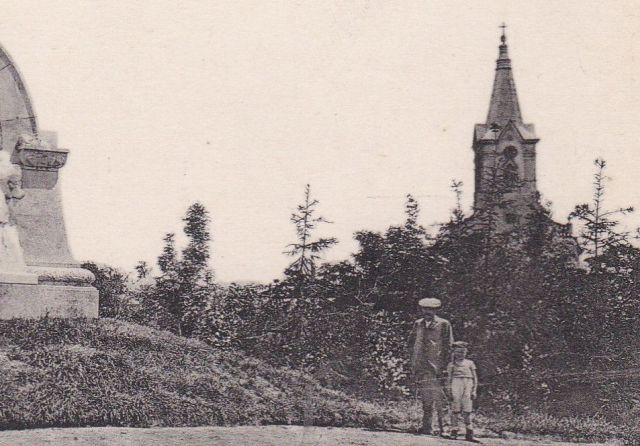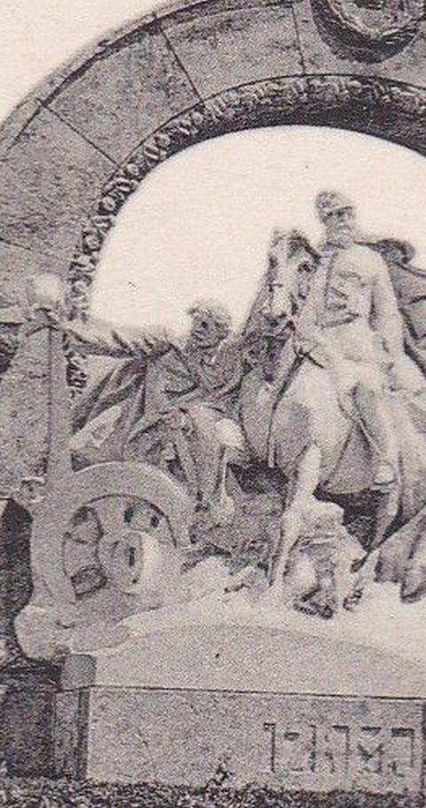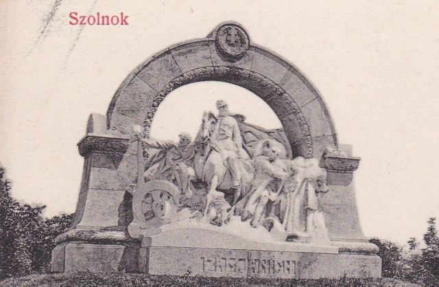 Ez a fotó 1912 nyarán készülhetett Szolnokon. Radnai Béla az év március 19-én felavatott Damjanich-emlékműve látható rajta, illetve a művésztelep fái mögött a Vártemplom. Meg egy rövidnadrágos kisfiú egy férfival. Lehet, hogy nem véletlenül maradtak meg a szolnoki Kissné képeslapján.
