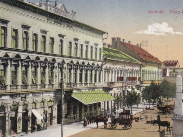 A szolnoki Kossuth teret ábrázoló felvétel az előző századfordulón készülhetett. Akkor, amikor a szolnoki vasútállomáson már legalább öt vonal találkozott. És mégis, egy delizsánsz, azaz egy, a XVIII. század közepétől használt, utasok szállítására is alkalmas postakocsi áll a tér közepén.