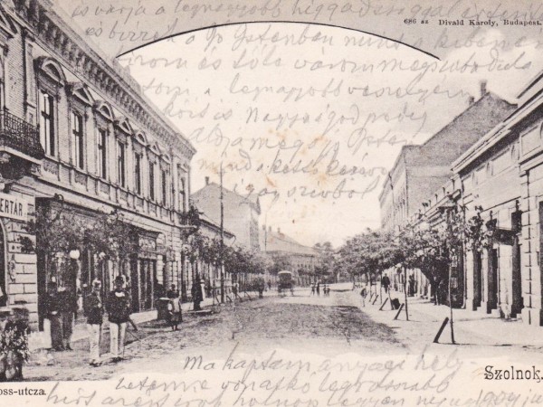 Szolnokon is jártak, szerintem a vasút miatt már egészen korán. Az pedig biztos, hogy miután Divald 1891-ben a fiait is bevette vállalkozásába, illetve Budapesten nagyon komoly kiadót – stúdióval és nyomdával – nyitottak, ahonnan már az egész országot kiszolgálták, a századforduló előtti években többször is meg kellett fordulniuk Szolnokon. Amit több, jellegzetesen keretezett képeslapjuk is bizonyít. És miután Szolnok belvárosát és vasútállomását a Baross utca kötötte össze, aminek a 19. század végén még csak az eleje mutatott városias képet, kijelenthető, hogy e képeslapon megörökített helyszínen is többször kellett járniuk, így nem véletlen, hogy fotózták is.