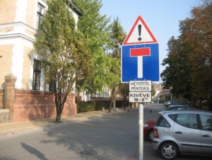 Ha valaki hétfőn érkezett a Sóház utca és a Szapáry utcák kereszteződésébe, és a Tisza-park felé akart haladni, akkor ott egy olyan zsákutca táblával találkozott, ami alatt a kiegészítő-tábla arról tájékoztatott, hogy a szakasz csak hétfőtől péntekig zsákutca. Aki viszont ma jár erre, az a tábla alapján azzal szembesül, hogy a Sóház utca bizony mindig zsákutca.