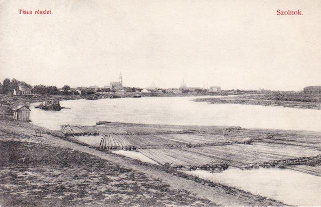 Erdélyből úsztatott fa a kép előterében és a túlparton. Bőgőshajók, amelyek ott sorakoznak végig a folyó, város felőli partján. A három nagy felekezet templomai. A Scheftsik-malom. És az 1909-ben a jég által elsodort fahíd, amely Szolnokot oly fontossá tette az utazók és a kereskedők számára. Ez az 1899 és 1904 között készült fotó azt az időszakot őrzi, ami Szolnokot valóban felrakta az ország, nemcsak papíron értelmezhető térképére. Azt a kort, ami megteremtette Szolnok ma még kézzelfogható, épített emlékeit.