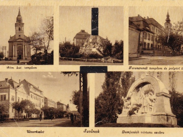 A budapesti Gárdony és Fenyvesi képeslevelezőlap-kiadóvállalat 1942-ben jelentette meg fehér, jóminőségű kartonra nyomtatva ötképes szolnoki anzikszát. Minden bizonnyal nem új fotókat használtak a kiadványhoz, hanem a korábbi, nagyjából másfél évtizedben, a cég tulajdonába került szolnoki fotóból állították össze a lapot. Így rákerült a Vártemplom, az akkori Gorove (ma Kossuth) utcai palotasor – a Mezőgazdasági Takarékpénztár szecessziós épületétől a már gimnáziumként funkcionáló Obermeyer-féle házig -, a Damjanich-emlékmű és a Szent Ferenc (ma Templom) utca eleje a polgári leányiskolával és a belvárosi nagytemplom tornyával.