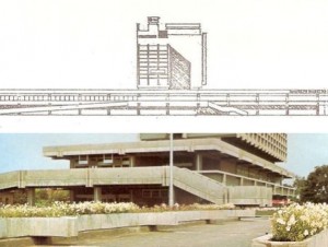 Tehát a Pelikán Hotel végéről az elmúlt hónapokban eltüntetett széles, középen pihenős, egyébként rettentő ronda betonlépcső részben ezt a passzázst szolgálta volna ki. Ahogy az SZTK felé eső oldalról elbontott autórámpa is, ami gondolom, áruszállítási és mentési céllal készülhetett. Ahogy ezt egyébként egy 1969-ben megjelent terv is mutatja, ami lényegében a mai Baross utca felől ábrázolja a Pelikánt és a soha el nem készült passzázst (lásd. a rajzot).