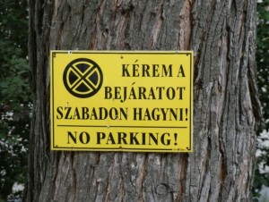 A Tallinn városrész egyik fáján élő mókuscsalád feje megunta, hogy olykor nem tudja használni odúja bejáratát, mert mindenféle alakok pont a bejárata elé parkolnak. Szerzett hát egy jól megfogalmazott, rikító színű táblát, pár nagyobb szöget, meg egy kalapácsot. De nem tudta felszögelni a táblát, mert a mancsaival csak egy mogyorót bír el. Szerencsére a Vásárhelyi Pál utca egyik lakója is hasonlóan érzett, és ő már tudta használni a kalapácsot, a fát meg nem kérdezték. Így most rend van a Tallinn városrész egyik bejáratánál.