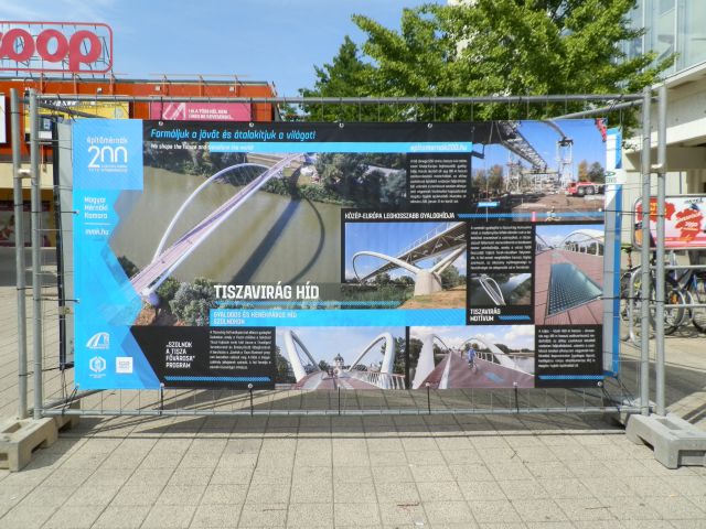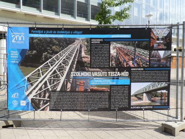 Innentől kezdve pedig akár helytörténeti tárlatnak is tekinthetjük ezt a szabadtéri, ingyenesen megtekinthető, sőt a Baross út és a buszpályaudvar közötti nagy gyalogosforgalom miatt sokak számára megkerülhetetlen kiállítást. Ahol például megismerhetjük a Tiszán átívelő szolnoki vasúti-híd évekkel ezelőtti átépítésének mérnöki bravúrját, sőt az átkelő kalandos történetét is. De örömmel fedezhetjük fel a tablók között a Tiszavirág-híd lassan egy évtizeddel ezelőtti építésének történetét, amiből például az is kiderül, hogy a teljes szerkezet közel 450 méter, aminek legszebb darabja a 186 méteres, acélszerkezetes mederhíd. Sőt, a lassan rétestészta hosszan nyúló M4-es építése is külön tablót kapott, ami arról is mesél, hogy az Üllő és Abony között készülő gyorsforgalmi út két szakasza összesen 62 kilométer, amin tíz darab különszintű csomópont készül.