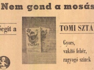 Tíz évvel később, 1973-ban is voltak érdekes hirdetések. Például a Szolnokon gyártott Tomi Sztár mosóporé, amiről a mellékelt reklám alapján mindenki tudta, hogy hol szerezhető be, hiszen ilyesmi nem került a kreatívra. Ám számomra nem ez a legérdekesebb ezen az 1973. április 4-ei hirdetésen, hanem maga a termék létezése. Az egy dolog, hogy a Tomi márka 1969-ben jelent meg a Tiszamenti Vegyiművek portfoliójában – egyszer talán hitelt érdemlően sikerül bizonyítani a név eredetét is -, a Sztárról viszont eddig úgy tudtam, hogy csak 1974-ben kezdték gyártani. A csomagolás tervezője ugyanis egy interjúban úgy emlékezett, hogy 1974-ben rajzolta meg a szélforgót és a „kiváló áruk fóruma” logót tartó kéményseprő fiúcskát. Azt hiszem, rosszul emlékezett, mert szinte kizárt, hogy Szolnokon már egy évvel korábban így hirdették volna a később a város egyik „jelképévé” váló terméket.