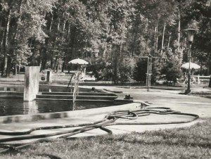 Tíz évvel később nem adtak hírt újabb szolnoki vendéglátóipari egység megnyitásáról a helyi lapban, viszont belengették, hogy május közepén végre megnyithat a Tiszaligeti strandfürdő, ami akkor már legalább két éve épült. Hozzá kapcsolódóan 1964-ben a Tiszaligeti camping is elkészült, ahol 1965 tavaszán is folytatódtak a fejlesztések, és újabb húsz faház felállítását tervezték a szezonra. A hatvan évvel ezelőtti április legfontosabb szolnoki eseménye azonban a Táncsics utca végén felállított Lenin-szobor volt – ma Zounuk ispán evez a helyén -, illetve az, hogy Szolnokra érkezett Tyereskova, azaz az első női űrhajós. Ehhez képest tényleg kis színes, hogy a Tallinn úti 12 tantermes általános iskola építésén katonai brigádokat „vetettek” be, azaz olyan szakmunkásokból álló egységeket, amelyek tagjai a sorkatonai szolgálatuk idején ingyen dolgoztak a különböző beruházásokon. (Fotó: A Tiszaliget körmedencéje a hetvenes években)