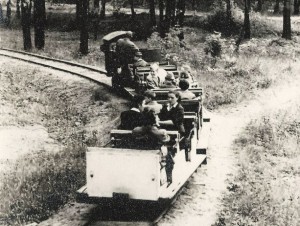 A nyár közeledtével 1954-ben is viszonylag sokszor került szóba a szolnoki gyerekek szórakoztatása. Egy hír szerint az év június elején adták át, az akkor még nem Tiszaligetnek nevezett terület főút felőli végénél, a Vidámkert új attrakcióját a gyermekvasutat. Gyanítom, hogy ez nem azonos a későbbi tiszaligeti úttörővasúttal, hiszen ahhoz majd szükség volt a Liget árvízmentesítésére, ami nagyjából 1964 körül történt meg. Ugyanakkor a területen már 1954-ben is szerveztek úttörőtábort sátorokkal a fák alatt. Ezen kívül pedig 50 szolnoki úttörő a pusztataskonyi kastély egykori parkjában táborozhatott. A mából nézve azonban ennél sokkal érdekesebb, hogy az F. Bede László – azaz a mai Kellner Gyula – utcát a megyei napilap szerint játszóutcává nyilvánították, azaz oda semmiféle autó nem hajthatott be, hogy a gyerekek nyugodtan játszhassanak. Ehhez persze érdemes tudni, hogy magéntulajdonú autó akkoriban nem nagyon létezett, és a cégeknek is viszonylag kevés gépkocsijuk volt, arról pedig nem ír a korabeli újság, hogy a bringások és a lovaskocsik használhatták-e a mai Verseghy park melletti közterületet. (A mellékelt fotó Dombi Gábor gyűjteményéből származik, és talán a tiszaligeti kisvasutat mutatja – nem tudni mikor.)