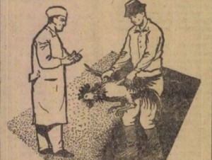 A védekezés és a megelőzés hat évtizeddel ezelőtt is fontos volt, ezért is építettek gyalogos felüljárót a Thököly úton a vasúti sínek fölé (soha nem hallottam róla). De ugyancsak ilyesmiről szólt a „Vigyázni kell ennyi az egész” című zenés, munkavédelmi (!) kabaré a Ságvári Endre Művelődési Házban. Sőt, a cukorgyár villámsújtotta, rendkívül rossz állapotban lévő kéményének felújítása is ezt a célt szolgálta volna, már ha a Gyárkémény Javító és Építő Vállalat (esküszöm, nem én találtam ki) hajlandó lett volna vállalni a veszélyes munkát (ez sem Örkény). Szóval hatvan évvel ezelőtt is volt mitől védekezni, és például a legyek irtáshoz a Szolnoki Ingatlankezelő segítségét is lehetett kérni, ami nem hinném, hogy egy csapat légycsapós ember kirendelésével valósulhatott meg. A baromfielhullás ellen védő vagyonbiztosítás reklámjának rajzát viszont nem érteném félre, ha tudnám értelmezni. Mit csinál az a férfi azzal a kakassal? Milyen vész? Mire gondolhatott a hirdetés megrendelője, a kitalálója és a rajzolója?