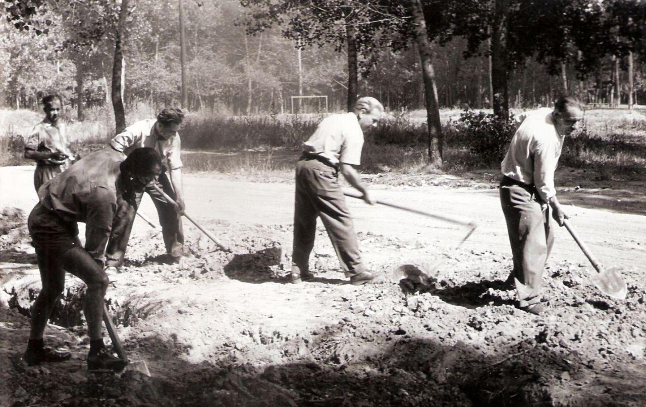 Természetesen a szórakozás és a város szépítése sem kerülte el a fél évszázaddal ezelőtti szolnoki beruházók figyelmét. A Várkonyi téri 18 emeletes alatt nem sokkal korábban adták át az utólag hozzáépített szolgáltatóházat, így megnyílt az alkalom a környék rendbetételére. Az Útfenntartó Vállalat 180 ezer forintot fordított 1973 májusában az építkezés nyomainak az eltűntetésére, parkosításra, sőt, egy játszótér létrehozására. Ennél többeket érintett, hogy az ÉPSZER Vállalat megkezdte Szolnok első modern mozijának az építését a Vosztok úton. A már ekkor Tallinn mozinak nevezett, 300 személyes filmszínház beruházására 10-12 milliót szántak. Azonban a legtöbb akkori szolnoki fiatalt a helyi Ifjúsági park kialakítása érdekelhette, amit a Belvárosi Nagytemplom mögötti kertben az ötvenes években kialakított szabadtéri színpad helyén építettek, jórészt társadalmi munkában. Oly annyira, hogy volt olyan májusi szombat, amikor a közös ingyenmunka végén „dj” szórakoztatta a fiatalokat, vasárnap pedig a Komszomol együttes muzsikáját hallgatva építhettek. Még az első beton pingpongasztalt is ekkor és itt állították fel 1973-ban, igaz, egy évtizeddel később már ismét szabadtéri színpadként funkcionált a terület. (Fotó: Dombi Gábor gyűjtemény)