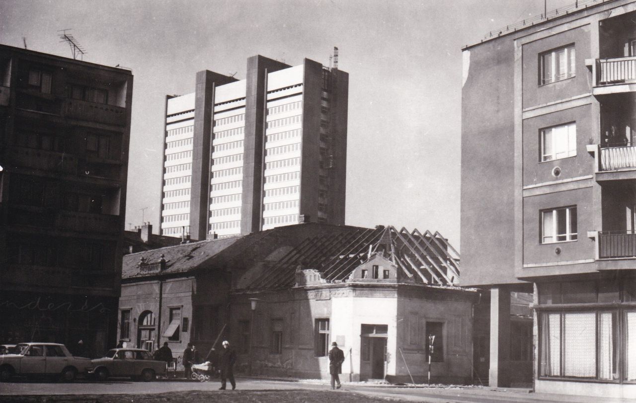 Bármilyen hihetetlen, de a 4-es főút beruházását 1973-ban leginkább két termelőszövetkezet (TSZ) melléküzemága befolyásolta. A kapacitások szűkössége miatt ugyanis a lebontott Beloiannisz úti épületekben lévő IKV üzletek helyiségeinek pótlására a tiszakécskei és a szajoli TSZ-ek kaptak megbízást. A Ságvári – ma Boldog Sándor István – körúti iparcikkboltot (később Sportbolt) 6 millió forintból a tiszakécskei Új Élet TSZ építette, lényegében a határidőket tartva. Viszont az egykori Népbankból, a háború utáni helyőrségi művelődési házból kialakítandó ruházati áruházzal (később Sztár) már komoly nehézségei voltak a szajoli Vörös Csillag TSZ-nek. Akkor még nem tudták, hogy 1973 végére sem fejezik be a munkákat, így a Sztárt csak 1974 tavaszán adták át. Nem biztos, hogy csak ennek volt köszönhető, de tény, az ötven évvel ezelőtti tervek a 4-es átkelési szakaszának 1974 végi átadására szintén nem valósultak meg, hiszen csak 1975 tavaszán lehetett ünnepélyesen átvágni a szalagot. (Fotó: Danka István)