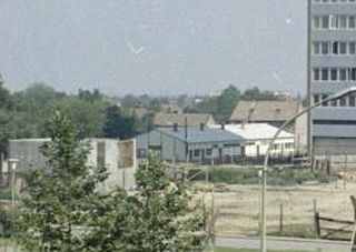Ugyancsak az egy évvel korábbra dátumozást támaszthatja alá, hogy a képen már álló Vízügyi székház mellett, 1974 nyarán valaminek látszódnia kellene az új – azóta elbontott – buszpályaudvar építkezéséből, hiszen azt a következő év április 4-én átadták a forgalomnak. Itt viszont még csak a kőolajos székház telkén álló felvonulási épületeket, illetve rájuk merőlegesen, az Ady Endre úton álló, földszintes házak tetőit vehetjük észre.