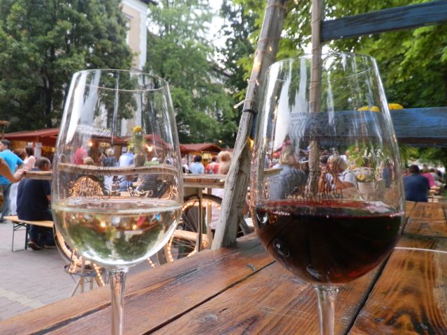 A szokott helyen pedig ott a kolbászos. Egy éve nem ettem papírtálcáról sültkolbászt mustárral, uborkával, meg kenyérrel. Gasztronómiai értelemben is meg kellett nyitni a Fesztivált. Nekem kihagyhatatlan élmény ülni abban a parkban, kolbászt enni, nézni a lassan hömpölygő szolnokiakat, és hallgatni, ahogy mögülem vagy oldalról szól a zene. Nem magnóról, felvételről, hanem élőben, valamelyik színpadról. És itt még be se fejezhetőek az asztali örömök. A rétesesre nagyjából annyira vártam, mint erre a szabadtéri kolbászozásra. Barackos-túróssal és meggyes-túróssal nyitottunk, merthogy van még négy este. A rétesek után pedig a Léránt Pincészet standja következett és barrikolt cabernet sauvignon fesztiválpohárban. Hogy még jusson, és ne legyen hiányos a gyűjteményem.