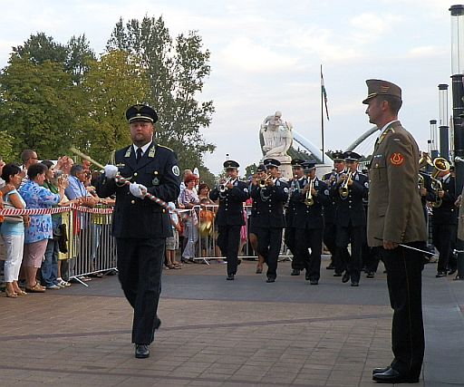 Nem igazán érdekel, hogy a katona-zenekari fesztivál miért volt előbb, mint máskor. Azon sem vagyok különösebben fennakadva, hogy kevesebb zenekar lépett fel, mint korábban, és nekem az is mindegy, hogy a debreceniek helyett a kaposváriak jöttek. A helyszínválasztást, miszerint az idei bemutatót nem a Kossuth téren, hanem a Tiszai hajósok terén rendezték, először kicsit idegenkedve fogadtam, aztán mire beesteledett, a Szolnoki Szimfonikusokkal kiegészülő zenekarok mindenről meggyőztek.
