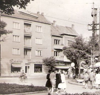 Tovább haladva a kép bal oldala felől indulva, láthatjuk, hogy a mai ruhabolt helyén, a sarki ház földszintjén rádió és televízió szaküzlet működött először, ugyanis ezt a házat nem sokkal korábban adták át. És ne felejtsük el, hogy a fotó a Magyar Televízió első adása után 5-6 évvel készülhetett, tehát a szolnokiak többsége számára ez a vágyak mintaboltja is lehetett. Ahogy a mellett lévő ház földszintjén lévő Óra-Ékszer bolt is, ami ezek szerint legalább öt évtizede őrzi profilját.
