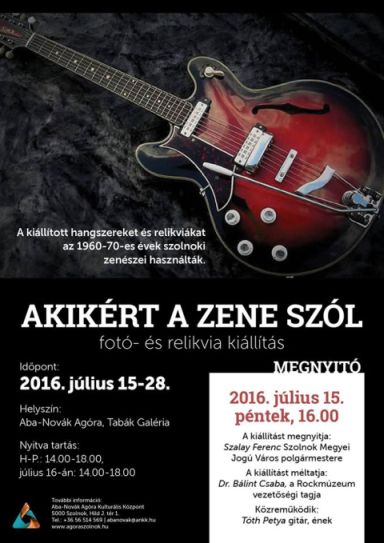 – A kiállítás alapja az az 1600 fotó, ami Szolnok elmúlt hatvan évének könnyűzenei múltját örökíti meg. Ebből olyan hatvan-hetven képet fogunk kiállítani. Például azt az 1957 nyarán készült fotót, amin a Bergendy testvérek Rocky nevű zenekara látható, amikor még a Móricz-liget elején álló, régi Aranylakat halászcsárdában játszottak. Az 1956 decemberében alakult formáció ezzel a koncerttel futott be, hogy aztán a Sport presszóban és nagyon sok környékbeli településen is hatalmas sikerrel lépjen fel. De lesz kép az Integrálról is, illetve minden olyan, egykor népszerű szolnoki együttesről, amelyek meghatározóak voltak a város könnyűzenei életében. A képek mellett pedig különböző relikviákat is bemutatunk, például Rónaszéki Tibor 1965-ös gitárját, Ács Laci kuriózumnak számító hangszerét, vagy éppen a házilag 15-16 gitárt készítő Münnich Károly egyik munkáját. De emellett ott lesz a Pop Consort 1972-es Ki Mit Tud?-on kapott 2. helyezettnek járó díja is.