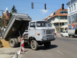 És természetesen nem feledkezhetünk meg a cseh – illetve az egykori csehszlovák – járműipar remekeiről sem. Sajnos lefotózni nem tudtam, de olykor feltűnt egy régi Skoda-LIAZ 706-os dömper is a szolnoki út- és járdaépítéseknél. Ez az az 1953-tól gyártott teherautó, ami sokunk számára, gyerekkorunk kukás- és locsolóautójaként maradt emlékezetes, sőt több ifjúsági játékfilmben (pl. Égig érő fű) is felbukkant. Ennek újabb, immár LIAZ néven futó változata rendszeresen hozta-vitte a feltört betont és a sódert a szolnoki út- és járdaépítéseknél. Lehet, hogy a beruházás egyik legfiatalabb – igaz, minimum 16 éves – járgányaként.