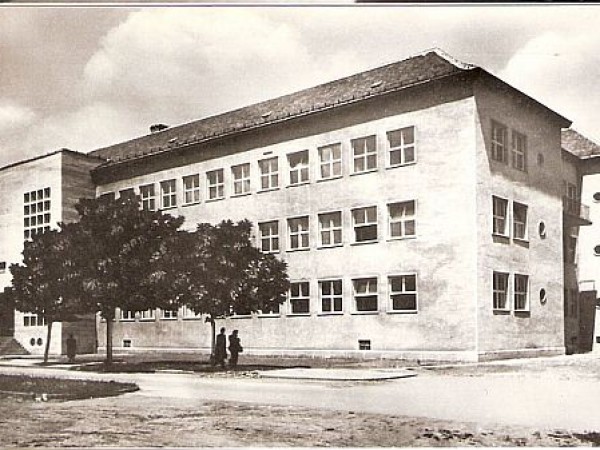 Az itt bemutatott kép biztos, hogy 1957 előtt készült, bár ahogy a nyitott ablakokat elnézem, az sem zárható ki, hogy még jóval az iskola átadása előtt. Az 1957-ben azért vagyok biztos, mert a Szoborlapon, Tóth György-Gyigyi jóvoltából fellelhető Vásárhelyi Pál szobor műlapján ez a dátum olvasható a felállítás időpontjaként. Erről a képeslapról pedig nemcsak a kerítés hiányzik, de az 1955-ben felvett névadó mellszobra is.