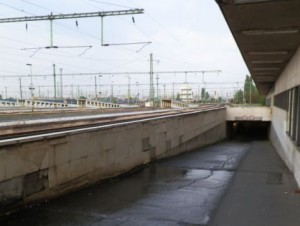 Ám, ha a peronokon azok két vége felé tekintünk, érdekes építményeket vehetünk észre. Olyanok, mint egy-egy nagyobb pincelejárók. Egyik végük a peronok járdáit nyeli el, a másik viszont a földet támasztja. Nem vagyok benne biztos, hogy a neten talált „csomagaluljáró”, „csomagalagút” kifejezés a pontos megnevezésük. Mindenesetre érdekes kaland a közforgalom számára ma is nyitva lévőt felkeresni. Még akkor is, ha ez egy félelmetes vállalkozás.