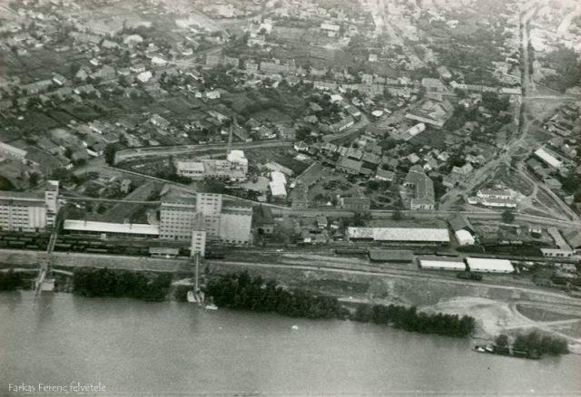 Hogy Farkas Ferenc, aki a képen látható felirat szerint a felvételt készítette, ki lehetett, nem tudom. Ha tippelnem kellene, akkor vagy katona, vagy vízügyi szakember vagy valamelyik újság élelmes fotóriportere. Ugyanis nekik volt esélyük akár a háború előtt, akár utána arra, hogy repülőgépről fényképezzék a várost, annak is egy fontos ipari objektumát.