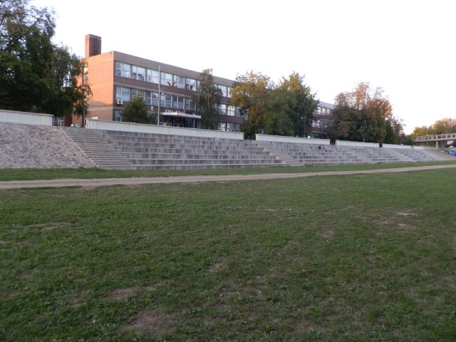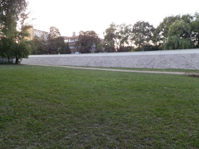 A rakpart jelenleg egy zöld terület, így környezetvédelemre hivatkozva nem szabadna leaszfaltozni. Nem hinném, hogy annak a kitaposott kutyafuttató fűnek különösebb természetvédelmi értéke lenne. Nem érne bennünket kár, ha ott egy nagy aszfaltplacc – vagy díszkő esetleg napenergia termelő burkolat, stb. (lehet választani) – jönne létre. Árvíz idején sem. Ugyanis, ha rendesen építik meg a rakpartot, jön-megy a víz – mint Szegeden vagy Pesten – és félnap takarítás után használható a terület.