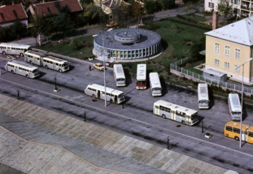 Egészen 1976. augusztus 17-ig (45 éve), amikor is átadták az Ady Endre úton az első, szolnoki buszpályaudvart. Az a földszintes, tetején a középvonala felé, azaz befelé lejtő, jórészt nyitott pályaudvar, és a hozzátartozó – szerintem fantasztikus – kör alaprajzú szolgálati épület három évtizeden keresztül szolgálta a helyi Volánt, a szolnokiakat és a busszal érkezőket. Azzal itt és most ne foglalkozzunk, hogy a buszpályaudvar 45 évvel ezelőtti elhelyezésének hibás döntését másfél évtizeddel ezelőtt miért nem sikerült korrigálni, és mondjuk a szolnoki vasút- és helyközi autóbusz-állomásokat egymás mellé telepíteni. (Fotó: Fortepan)