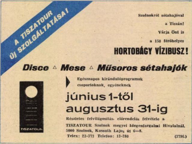 De hát ekkoriban éppen annak is örültek, hogy negyedszázad kihagyás után ismét gabonaszállító uszályok jelentek meg Szolnoknál a Tiszán. Ez azt a reményt is táplálta, hogy feléled a víziszállítás a folyón, sőt a kirándulóhajók révén akár a személyszállítás is fellendülhet. Négy évtized távlatából ma már tudjuk, hogy mindez hiú remény volt, és ma is legfeljebb egy sétahajónak örülhetünk Szolnoknál a Tiszán. Igaz, discohajó, mesehajó, műsoros hajó már jó ideje nem közlekedik, pedig pár évtizede még micsoda divatja volt az ilyesminek. De hát azóta sok víz lefolyt a Tiszán.