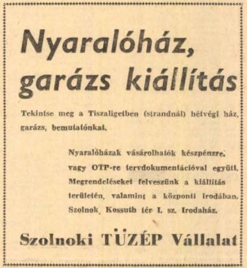 Tíz évvel később, 1972 májusában szerintem már nem elsősorban rádiókészülékre vágytak a szolnokiak (sem), hanem sajt televízióra, bár tegyük hozzá, addigra minden második háztartásban volt tévé. Miként talán verseny is az üzletek között, hogy magukhoz csalogassák a tévére vágyókat, például az előfizetési díj visszatérítésével. Merthogy akkoriban egyfajta adót kellett fizetni a készülékek után. Igaz, a Kádár-kor közepén sokan már nemcsak tévére vágyhattak, hanem nyaralóra is, amiben a Tüzépek is igyekeztek segíteni az előre gyártott és a telken könnyen összeállítható faházak forgalmazásával. Szerintem még ma is sok szolnoki telken áll ilyen fél évszázados faház, miként ma is megvan az 1972-ben 5,5 millió forintért épült Mátyás király úti 120 személyes óvoda vagy éppen a Szolnok megyei Temetkezési Vállalat akkor épült székháza – a mai Áchim és Liliom út sarkán -, na meg az akkor új Kolozsvári felüljáró, amit 50 millióból építettek abban az évben.