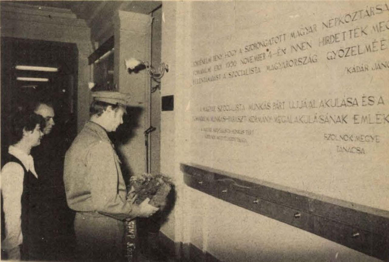 Négy évtizeddel ezelőtt november első napjaiban valahogy kevesebb szó esett a szentpétervári eseményekről, és kicsit több az 1956-os szolnokiakról. (Amikről azóta tudjuk, hogy valószínűleg nem, vagy nem teljesen úgy voltak, ahogy „elmondták”.) A Táncsics Mihály úti Helyőrségi Művelődési Otthonban (HEMO) például emlékkiállítás nyílt az akkor 25 éve alakult munkás-paraszt kormány emlékére. (Sajnos nem tudom, mit állíthattak ki.) A megyeházán pedig ünnepi tanácsülést rendeztek november 3-án, ami a tanácsterem bejárata melletti falon lévő, a forradalmi munkás-paraszt kormány „szolnoki megalakulására” emlékeztető márványtábla megkoszorúzásával zárult. Persze, november 7-éről is esett szó, igaz, 1981-ben már kevésbé avatásokkal és átadásokkal. De például az ünnep tiszteletére nyílt meg az az 1200 tárgyból álló kiállítás a Megyei Művelődési és Ifjúsági Központban, amely Szolnok megye testvérmegyéjét, az Észt Szovjet Szocialista Köztársaságot volt hivatott bemutatni.
