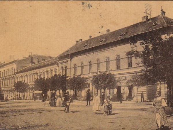 Szolnok épített örökségét talán kicsit jobban kell ismerni ahhoz, hogy valaki e képeslap felirata nélkül is be tudja azonosítani a fotózás helyszínét. Leginkább azért, mert a képen látható három ház közül már csak egy őrzi az itt megörökített formáját, és a bal szélen álló szobor sem segít a helyszín beazonosításában. A fotóstól legtávolabb lévő épület a mai Damjanich Múzeum, ami e kép készítése előtt nagyjából fél évszázaddal készült el, és mint Magyar Király Szálloda szolgált. A mellette álló alacsonyabb épület a Tiszavidéki Takarékpénztár székháza, aminek a helyén a hetvenes évek eleje óta egy négyszintes társasház áll. A fentiekből következően pedig a kép nézőjéhez legközelebb álló épület a mai Verseghy Könyvtár.