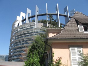 Ehhez képest az Európai Parlament épülete Strasbourg külvárosában egy ízléstelen irodaház. A kedves, öreg belvárostól, a hatalmas katedrálistól hosszan kell utazni, míg az uniós negyedbe érkezünk. Egy olyan városrészbe, ami másfél-két évtizede a világ egyik legunalmasabb, leghétköznapibb, német beütésű negyede lehetett, egyen házakkal, egyforma utcákkal, és talán még azonos életekkel is.