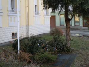 Azért voltak, akiknek sikerült szuper minőségű karácsonyfának valót szerezniük decemberben. Különben nem tartott volna ki a feldíszített fa Vízkereszt után még egy szűk hónapig. Mert nem hinném, hogy garázsban tárolták hetekig, mielőtt utcára került volna az üres szaloncukor papírokkal együtt. Bár az is lehet, hogy rekordot akartak dönteni, és utolsóként kidobni a karácsony egyik jelképét. Sikerült. Már csak az a kérdés, hogy meddig díszeleg az utcán ez a két farsangi fekvő fenyő.