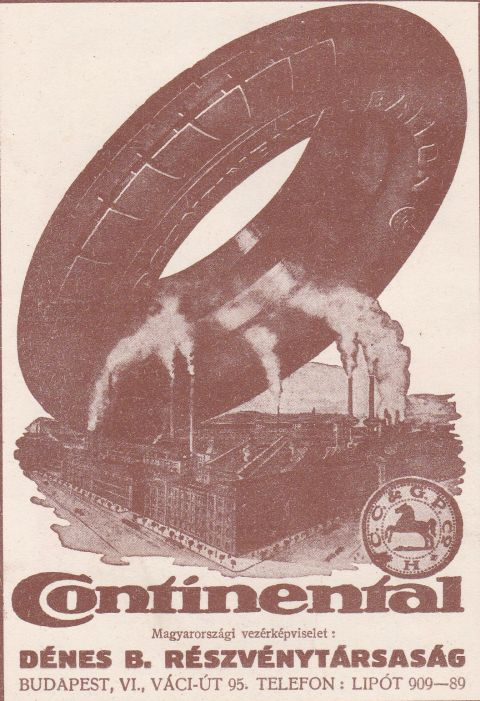 Vulkán Gumijavító Rt. a főváros hatodik kerületéből, akik, mint „Magyarország legnagyobb és legmodernebbül berendezett automobil-pneumatik (egy eltűnt szakkifejezés – a szerk.) javítóintézete” hirdetik magukat.