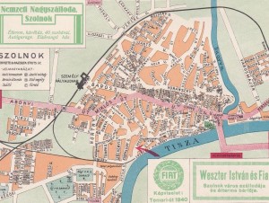 Nem tartom kizártnak, hogy ugyanezekkel a hirdetésekkel esetleg más városról is megjelent hasonló térkép. Szolnoki vonatkozása – a térképen kívül – ugyanis csak a címlapnak és a térképbe helyezett két/három helyi hirdetésnek van. Az egyik hirdetés a Nemzeti Nagyszállodáé, ahol 40 szobával, étteremmel, kávéházzal, sőt „autógarage”-zsal vártál az utazókat, hozzátéve, hogy „Elsőrangú ház”-ról van szó. És itt jön a térkép első bosszantó hibája. Úgy tűnik ugyanis, hogy a harmincas években nem is volt másik szállodája a városnak. Igaz ugyan, hogy a Tisza szálló helyére is odabiggyesztették a „H” betűt – ami a jelmagyarázat szerint szállót jelöl -, viszont mellé csak a „városi fürdő” felirat került. Holott a Nemzetin és a Tiszán kívül biztos, hogy létezett még más szálláshely is a Szolnokon, például az állomásnál lévő Kossuth, vagy éppen a Magyar Király a főtéren. És, ha már jelölés: bár a jelmagyarázat szerint F-betűt, azaz fürdőt is érdemes keresni Szolnokon, ez a betű sehová se került fel a térképre. Pedig a Tiszára minimum két helyre is berajzolhatta volna Stoits Gy. tervező.
