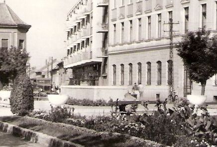 Csak érdekességként hívnám fel a figyelmet arra, hogy a teret közel negyedszázadon keresztül meghatározó szobor talapzata mellett még nincs ott a két szökőkút, viszont a műkő virágtartók már a helyükön vannak. És van egy másik dolog, ami nem látható a képen. Igaz, nem még, hanem már. Ez pedig egyértelműen segít abban, hogy kimondjuk: 1960 előtt nem készülhetett a fotó.