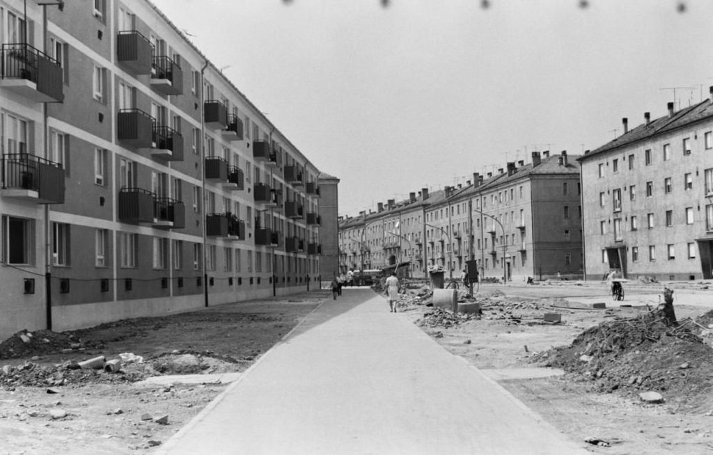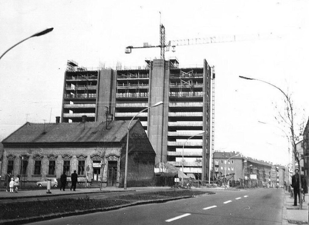 Nem úgy, mint az új részen, a mai Várkonyi tér és Ady kereszteződés között. A második világháború után itt zajlott Szolnok első jelentős lakásépítése, aminek eredményeként 1952 és 1959 között elkészült az a négy tömb, amiket leginkább „Ságvári körúti házakként” emlegetünk, és amelyek egyértelműen magukon viselik a kor építészetének nyomait. A házsor befejezésére majd a hatvanas években került sor, amikor elkészült a Várkonyi térhez közelebbi két utolsó tömb is. Természetesen csak azután, hogy megszületett az a tér, illetve a második Zagyva-híd.