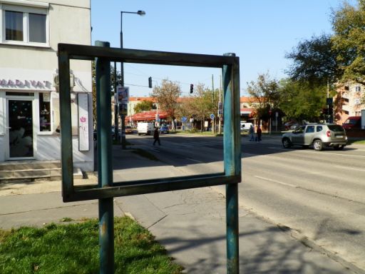 Az Ady Endre úton, az egykori főiskolával szemben találtam pár napja egy üresen álló hirdető állványt. Abból gondolom, hogy ilyen célt szolgálhatott, mert tőle pár méterre egy ugyanilyenben még benne van a hirdetés. Aztán gondoltam, le is fotózom az Ady Endre út 18. számmal szemben, a járda és a parkoló között, a fák hűvösében, hogy az A Kivert Biztosíték (AKB) rovatba feltegyem. Ám ahogy a legjobb beállítást kerestem, előbb egy magára hagyott szemetes oszlopán, aztán egy félbevágott közlekedési tábla csonkján akadtam fenn. Majd amikor az említett, használaton kívüli keret párját akartam megörökíteni észrevettem egy másik, ugyancsak funkcióját vesztett állványt.